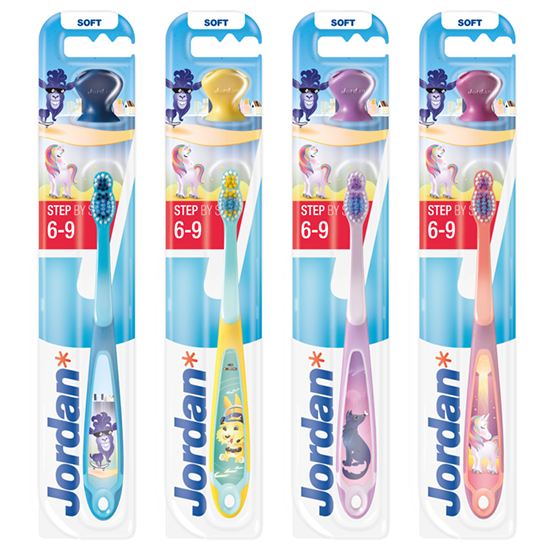 De Jordan Kids Step 3 tandenborstels is perfect voor kinderen van 6 tot 9 jaar. De speciaal ontworpen borstelkop bevat 2 verschillende borstelharen voor een goede reiniging van zowel de melktanden als het volwassen gebit.