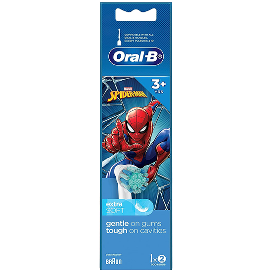 Wat is er nu leuker dan je tanden te poetsen met je favoriete superheld?! Met de Oral-B Kids Spider-Man opzetborstels poetst uw kind zijn tanden elke dag weer met plezier. Dankzij de extra zachte borstelharen van de Oral-B Kids Spider-Man opzetborstels zijn opzetborstels super geschikt voor het kindergebit. De haren zijn zacht voor het tandvlees, maar verwijderen tandplak effectief. Het resultaat is een schoon en gezond gebit.