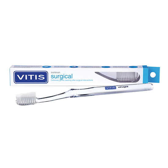 Na een chirurgische ingreep in de mond kan het zeer vervelend zijn om het gebit goed te poetsen. Toch is het zeer belangrijk om dit te blijven doen, omdat u hiermee een snelle genezing bevordert. De Vitis Surgical Tandenborstel heeft zeer zachte borstelharen om uw gebit onder deze omstandigheden goed te blijven verzorgen.